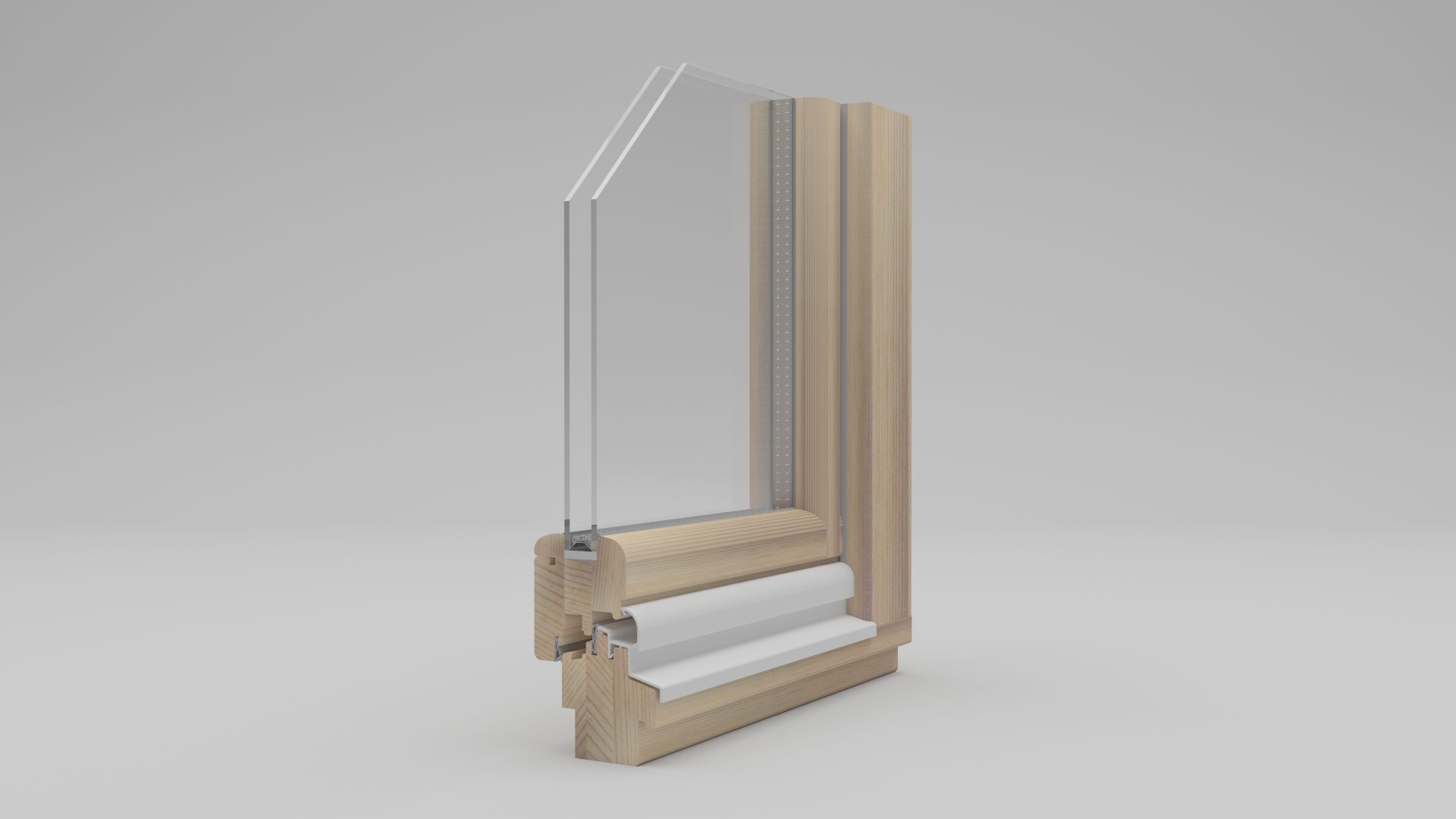 - Drvo: Drveni profil debljine 78 mm je od kvalitetnoga drveta (smreka/jela/ ariš/hrast/ meranti/bor), lijepljen bez vidljivog dužinskog spoja; za bolju prilagodbu s opremom enterijera, prozor se može izraditi iz različitih vrsta drveta.