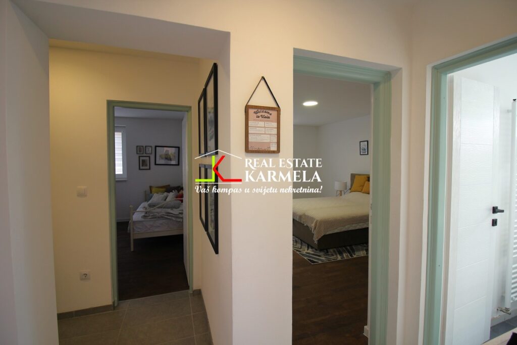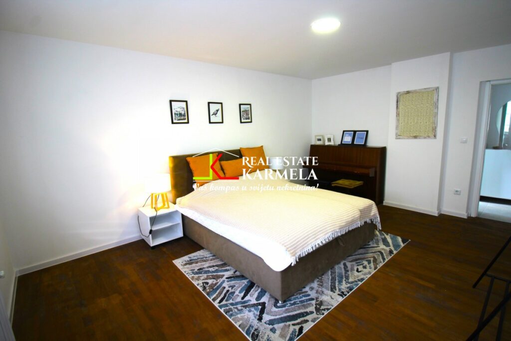 Stan je generalno renoviran 2024.godine. Stambeni prostor posjeduje prostran podrum i garažu koja je vanknjižno vlasništvo a vlasnici su u posjedu 50tak godina, pa jer bitno napomenuti da je time rješen i problem parkiranja jer je predmetna garaža u neposrednoj blizini stambenog objekta. Ulazna vrata su protuprovalna. Vanjaska stolarija je PVC i promjenjena 2024.godine. Podovi u stanu su parket i pločice: u spavaćim sobama i dnevnom boravku je parket, dok je u hodnicima, kupatilima i radnom dijelu open space kuhinje keramika. Grijanje je etažno plinsko a bojleri protočni, što osigurava ekonomičnost grijanja i neograničenu toplu vodu, dok je prostor namješten i opremljen sa svim ključnim uređajima, uključujući mašine za suđe i veš, te novi WiFi klima uređaj